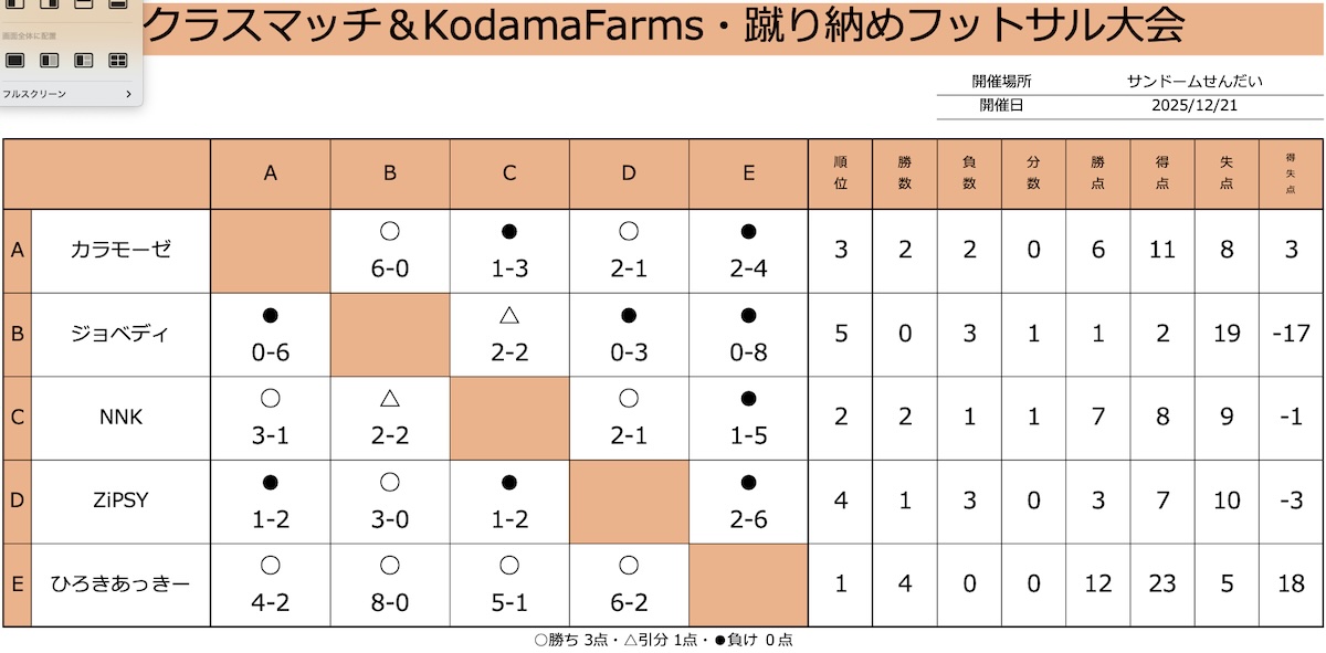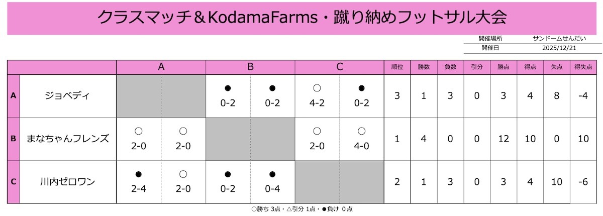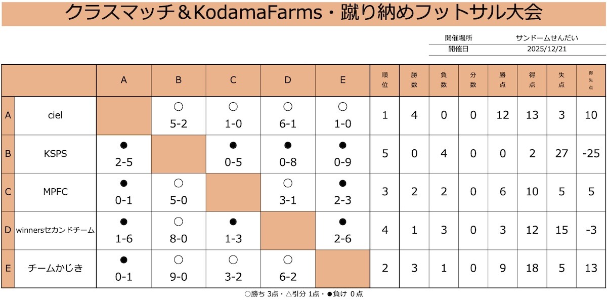 12月21日(日)クラスマッチ&KodamaFarms・蹴り納めフットサル大会にご参加いただき誠に有り難うございました。