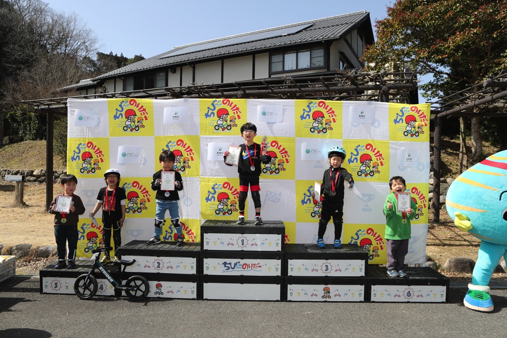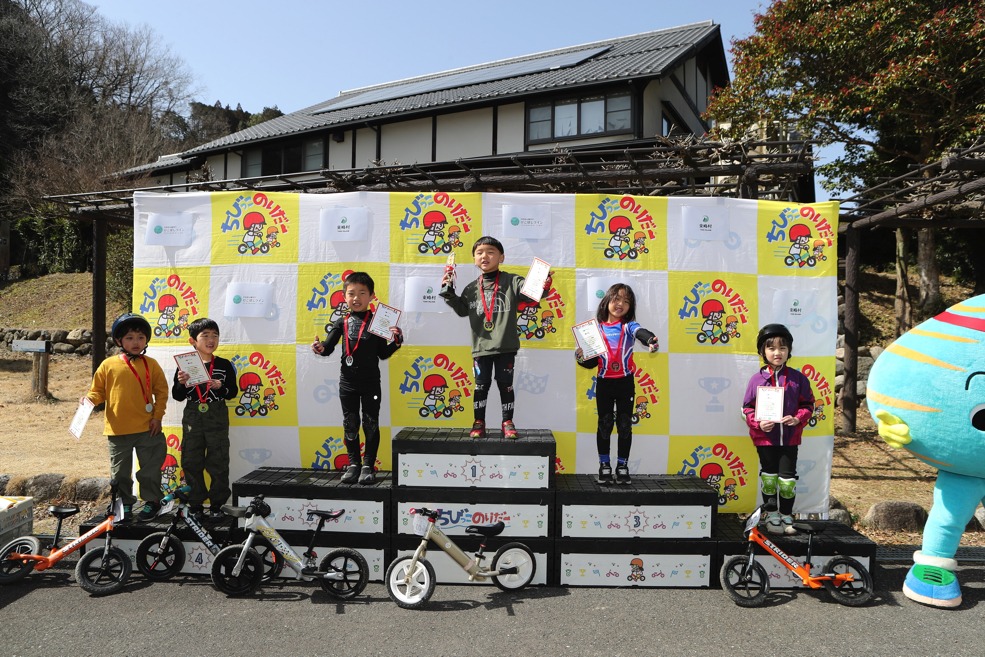2月23日(月)福岡県朝倉郡東峰村の山村文化交流の郷 いぶき館駐車場(アスファルト)で行われた、ちびっこのりだーひよこカップの結果と表彰写真となります。