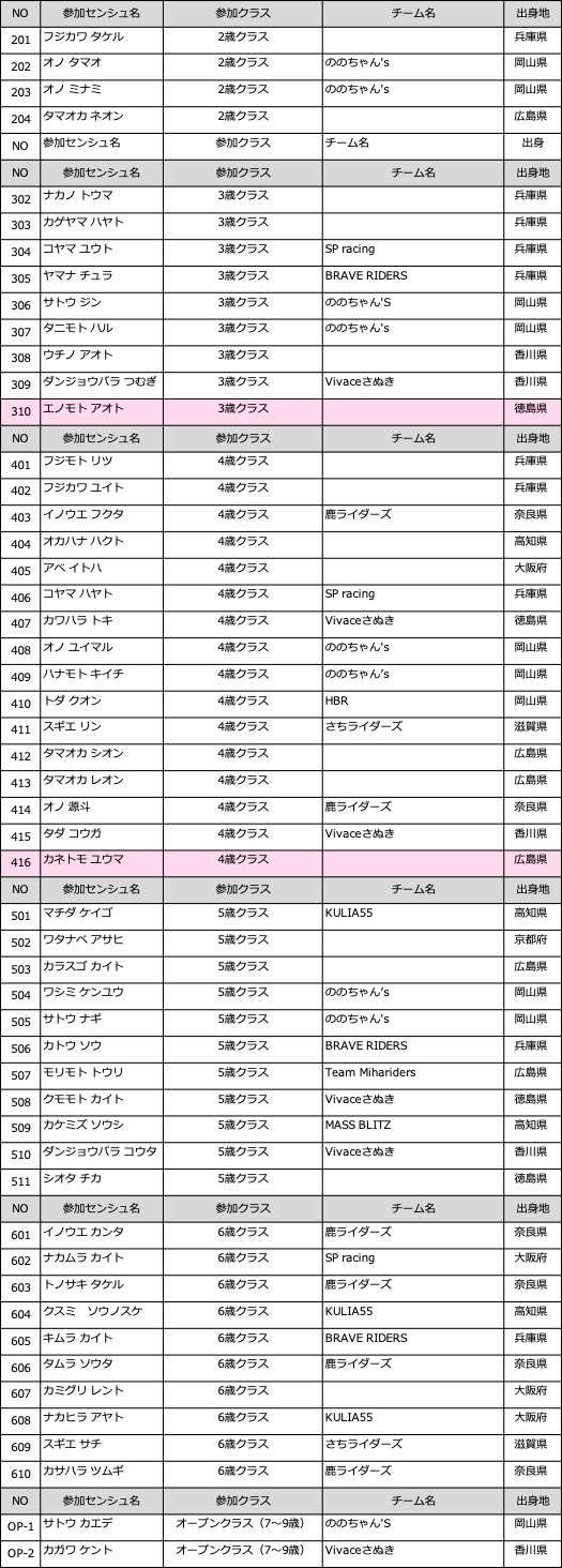 また「入金しているのにピンク色」の選手は、お振込日と振込者名(カタカナ)を事務局までお知らせくださいませ。