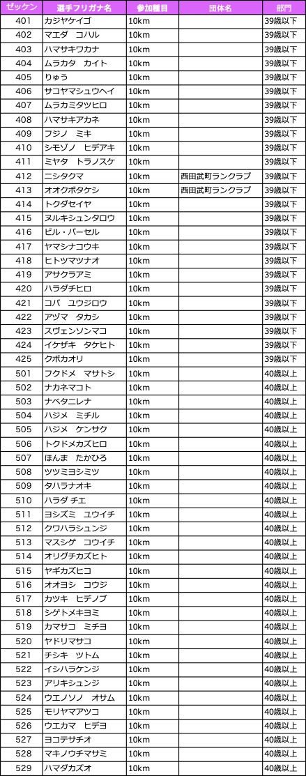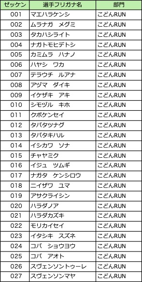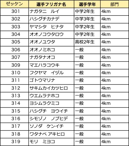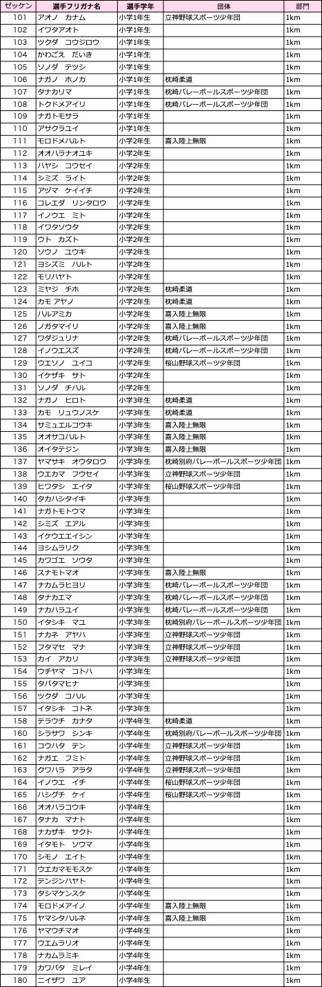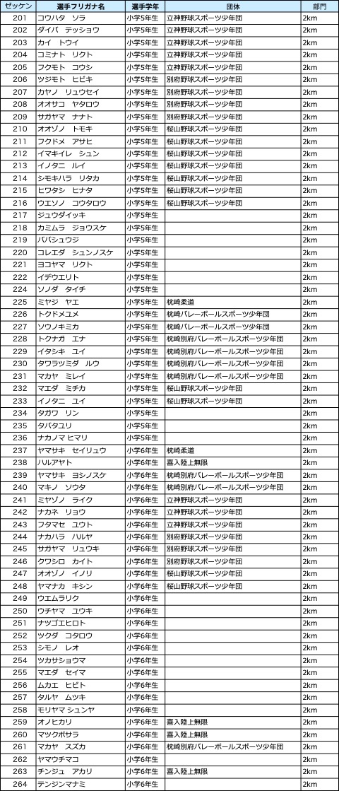各種目ごとのエントリーリストです。記載内容が異なる場合は事務局までご連絡ください。